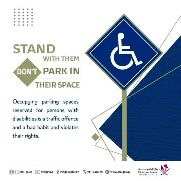 بوزارة الداخلية (MoI) حثت الجمهور على تجنب استخدام مواقف السيارات لذوي الإعاقة.