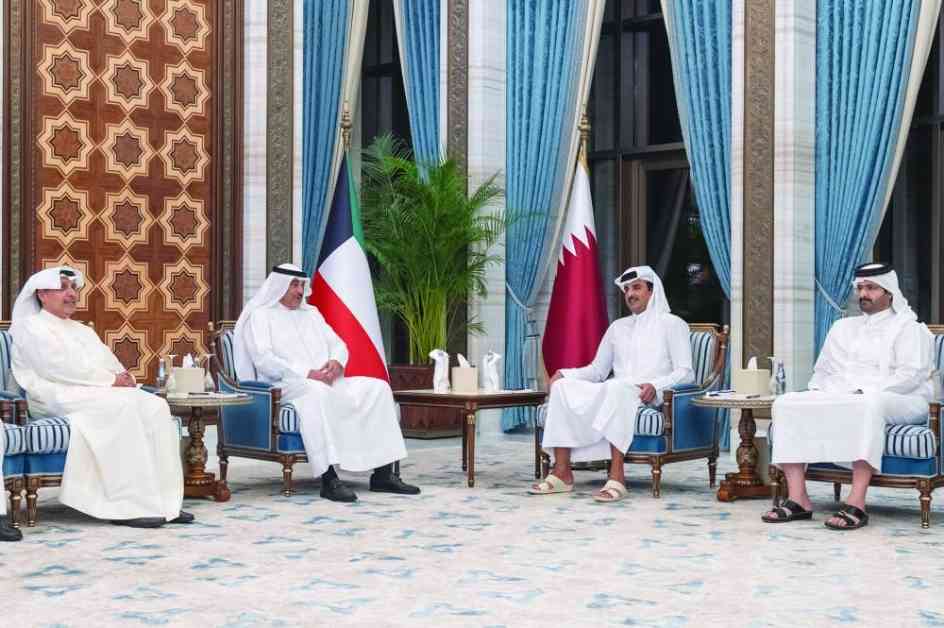 لقد استقبل صاحب السمو الأمير الشيخ تميم بن حمد آل ثاني أمس ولي عهد دولة الكويت الشيخ صباح خالد الحمد الصباح في قصر لوسيل. بدأ الاجتماع بتوجيه ولي العهد الكويتي تحيات أمير الكويت الشيخ مشعل الأحمد الجابر الصباح لصاحب السمو الأمير، وتأكيده على إدانة الكويت الشديدة للهجمات الإسرائيلية الأخيرة على الدوحة. وكرر ولي العهد الكويتي دعم بلاده الكامل وتضامنها مع قطر في مواجهة هذه الهجمات. في الوقت نفسه، وكلف صاحب السمو الأمير ولي العهد الكويتي بتحيته لأمير الكويت، معبرا عن تقديره وامتنانه للقيادة الكويتية على مشاعرها الشقيقة الحقيقية ودعمها. وتمنى صاحب السمو الأمير النجاح والازدهار المستمر لقيادة وشعب الكويت. شمل الاجتماع أيضا مناقشات حول العلاقات الثنائية وسبل تعزيزها بشكل أكبر، بالإضافة إلى تبادل وجهات النظر حول آخر التطورات الإقليمية والدولية. وحضر الاجتماع سمو نائب الأمير الشيخ عبدالله بن حمد آل ثاني، وسمو رئيس مجلس الوزراء ووزير الخارجية الشيخ محمد بن عبدالرحمن بن جاسم آل ثاني، وسمو رئيس الديوان الأميري عبدالله بن محمد الخليفي، إضافة إلى كبار المسؤولين القطريين. من الجانب الكويتي، حضر الاجتماع وزير شؤون ديوان الأمير الشيخ حمد بن جابر العلي الصباح، وسمو رئيس ديوان ولي العهد الشيخ ثامر بن جابر الأحمد الصباح، بالإضافة إلى كبار المسؤولين الآخرين. (كيونا)